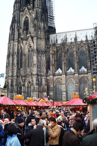 Cologne (Koln) is a wonderful cosmopolitan city dominated by a breathtaking cathedral. I don't think I've seen anything so large and still so ornate: it towers like a mountain cliff over the Dom Christmas Market below it.