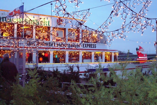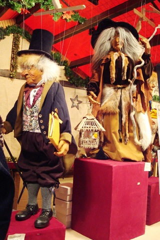 The third learning was the varieties of the Markets (There was a Market on a boat). They were scattered all over the city, leaving lots of time to see Koln while walking between the venues. The huge pedestrian shopping street connects all of the markets, and it's all open late. Like New York, the department stores fill their windows with Christmas scenes. I was taken by the jungle scenes in which all of the animals wore leopard skins or grass skirts. Curious ecology, and even more curious modesty, on the part of the Germans.