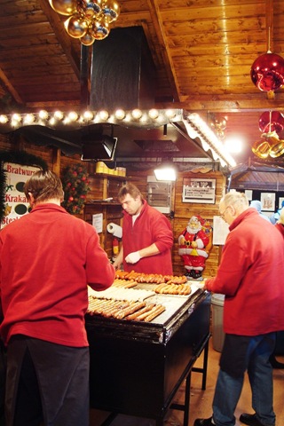 I thought that the best food was Speckbrehl, a hot bacon, onion, and potato dish that the Germans were eating by the bowl-full. Sausages were a close second, long ends sticking out of short, fat buns. The apple tart desserts were tempting, but I didn't get to try them (It's a cash economy in the Markets, and euros only stretch so far).